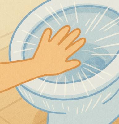 「ラップ」を使ったトイレつまりの解消作業では、便器にラップを貼り付けて作業を行います。