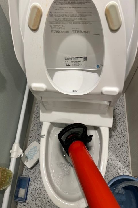 作業時間は約20分。今回のつまりはトイレ本体も新しく尿石付着の可能性も低い為、薬剤を使用せずに真空ポンプのみで作業が行えました。