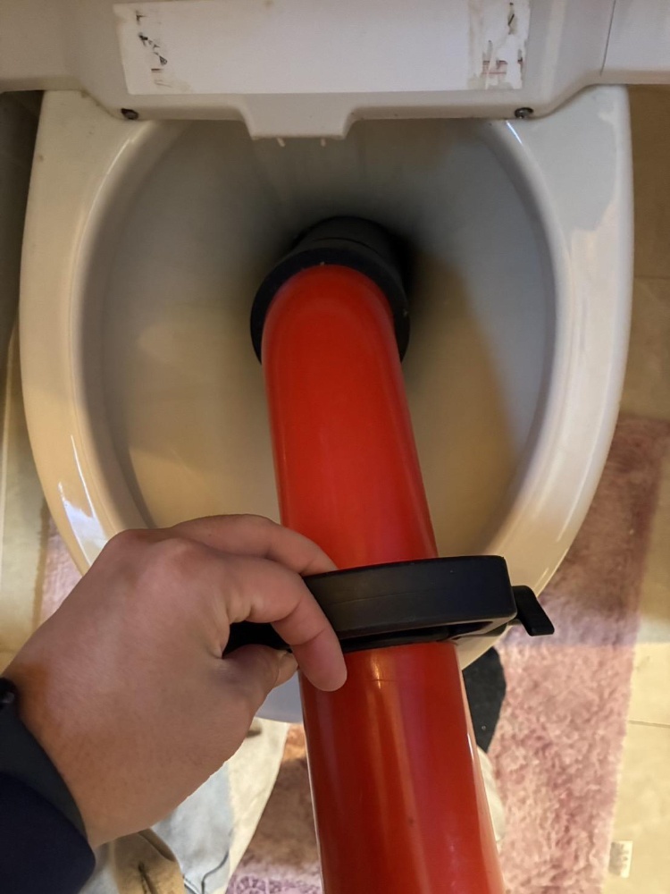 便器内の水を流すと、水位がゆっくりとしか下がらず典型的なつまり症状でした。お客様によると、特に異物を流した記憶はないとのことで、紙の滞留または便器内部の汚れの蓄積が原因と推測されました。便器は15年以上使用されているとのことで、尿石の付着による通水不良の可能性も高い状況でした。