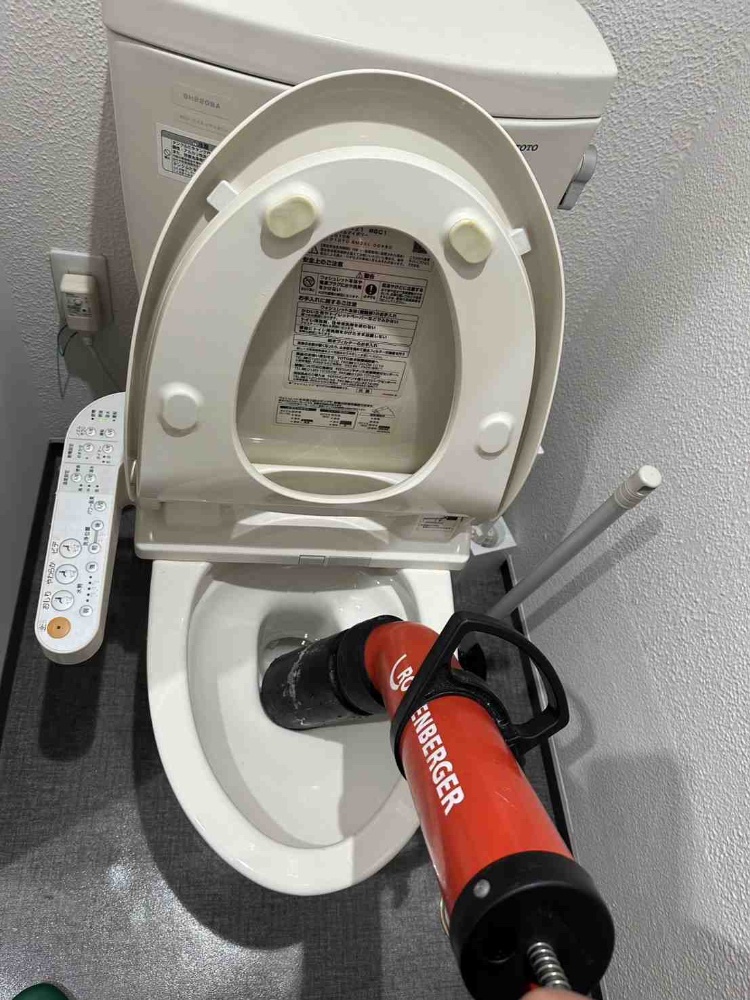 作業はローポンプを使用して行いました。排水口をしっかり密着させ、圧力をかけながら押し流す作業を繰り返すことで、便器内部に溜まっていた紙の塊が動き出し、数回の操作で水位が一気に下がりました。今回は便器脱着や配管作業を行う必要はなく、その場で解消できました。