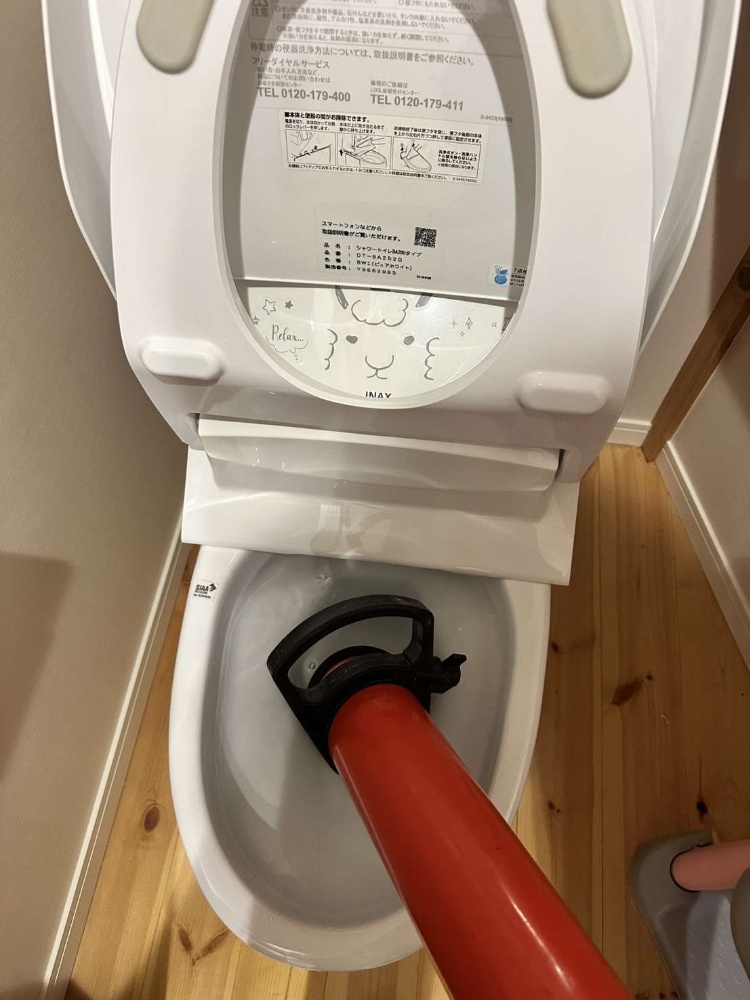 トイレットペーパーや便が軽く引っかかった程度であれば、 「水だけ」で自然に流れるケースがあります。 無理にレバーを連続で引かず、水位の変化を見ながら進めるのがポイントです。